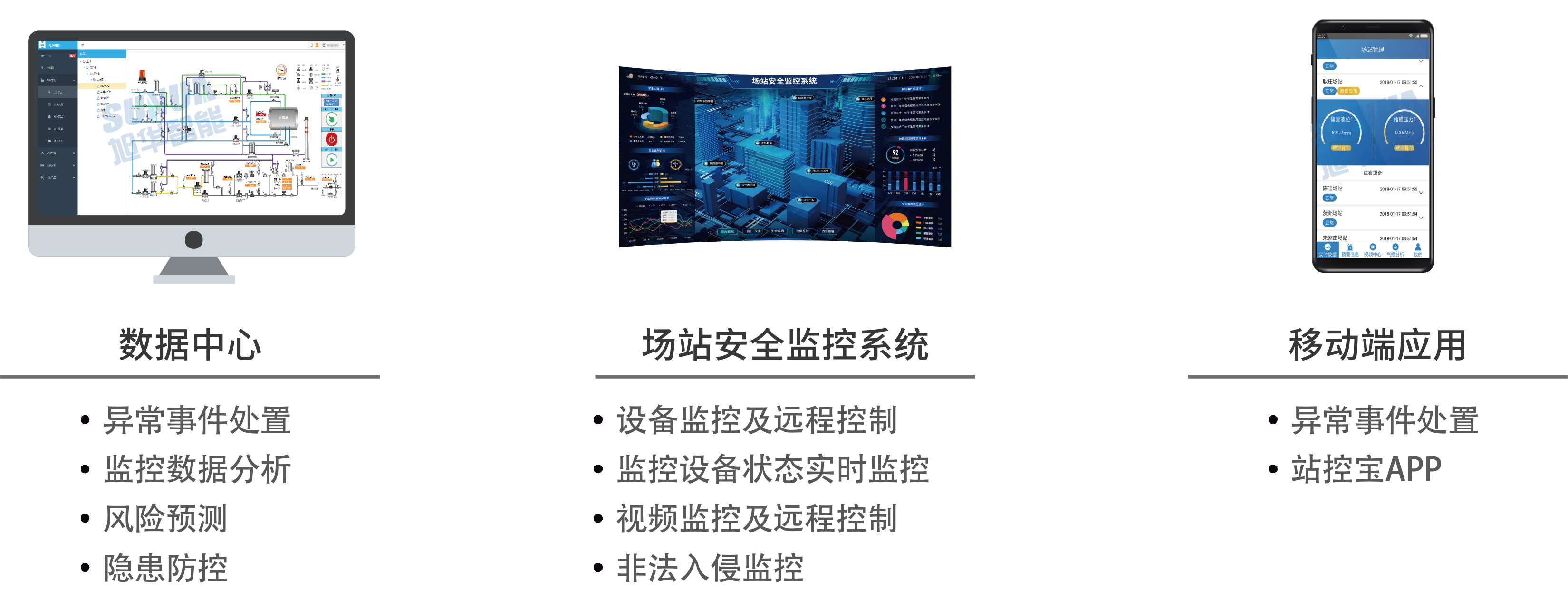 基于物联网技术,采用了“稳定、安全、数据传输迅速的网络技术”与“安全、成熟的工业自动化控制技术”,对场站及管网数据进行远传控制及视频监控安防的集成化控制系统。